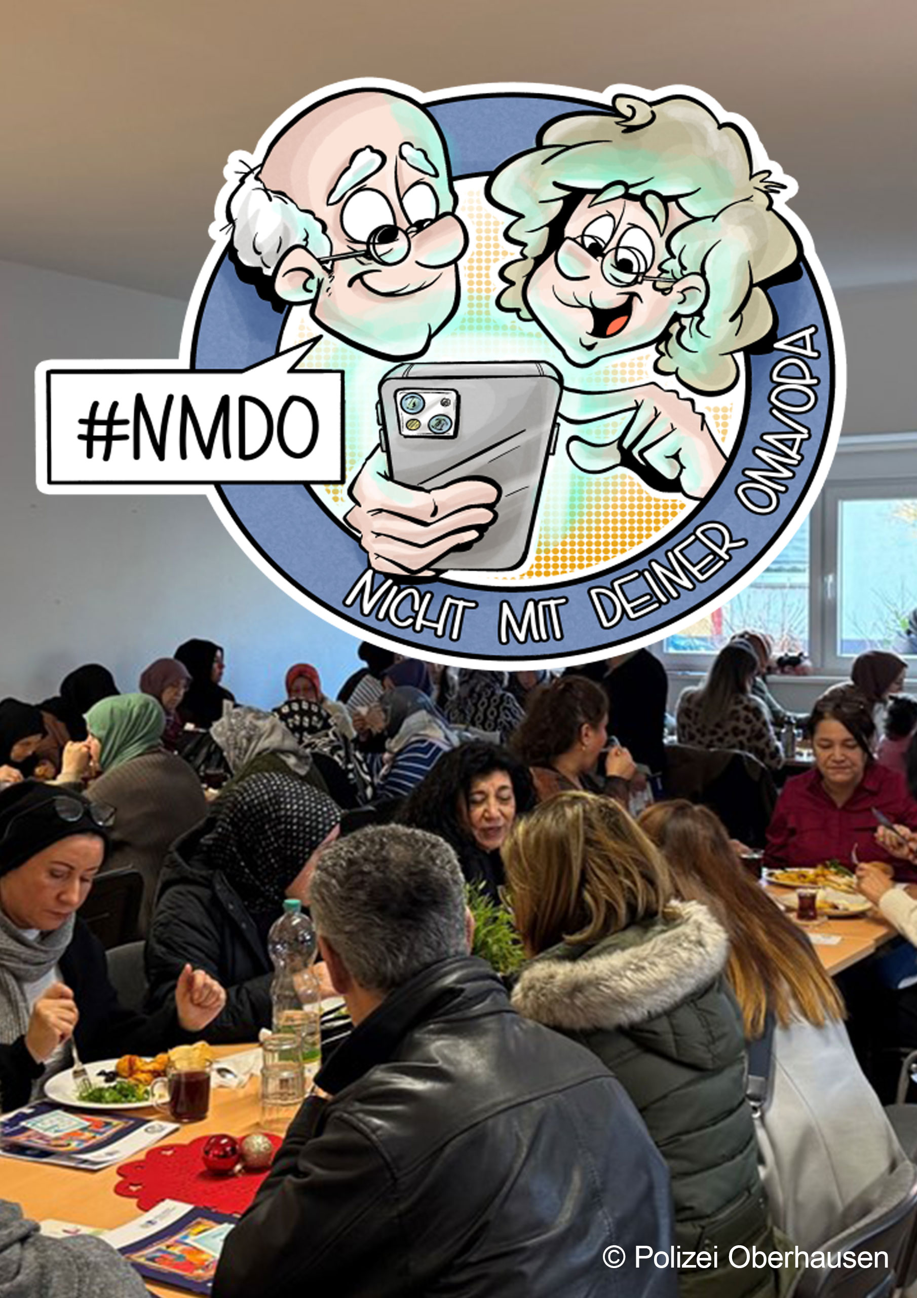 (5.12.) Die gemeinsame Informationsveranstaltung der Polizei Oberhausen, des Kommunalen Integrationszentrums (KI) der Stadt Oberhausen und des Vereins pro wohnen international e. V. stieß auf so großes Interesse, dass zahlreiche Gäste die Präsentation der türkischsprachigen Präventionskampagne #NMDO nur im Stehen verfolgen konnten.